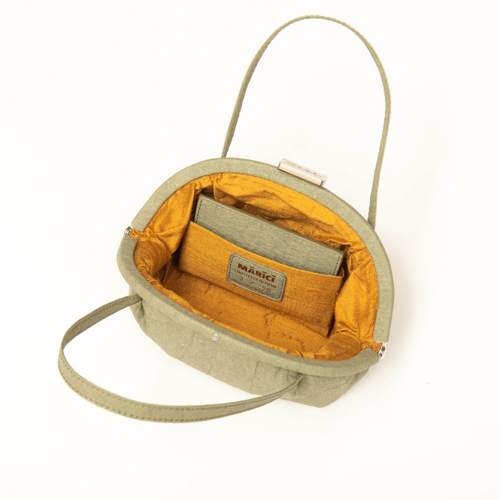 All Mārīcī products are made from plant-based leather alternatives made from up-cycling plant by-products taken from existing industries. Our materials are created without using any additional land, water, pesticides, or fertiliser.