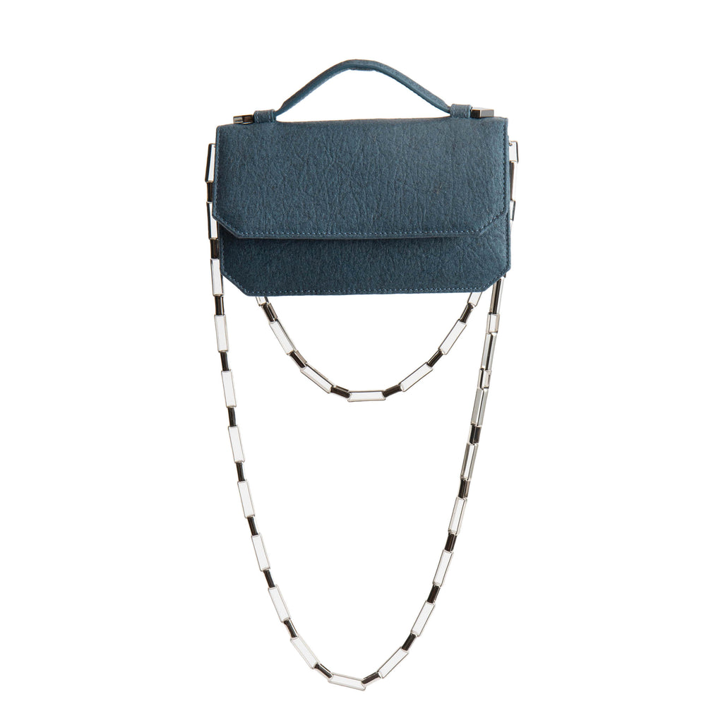 MariciSmall and chic, The South Kensington is a timeless classic with a rockstar twist. Carry yours by the leather top handle or by its two 18ct gold plated brass jewellery chains of differing length for versatile looks.