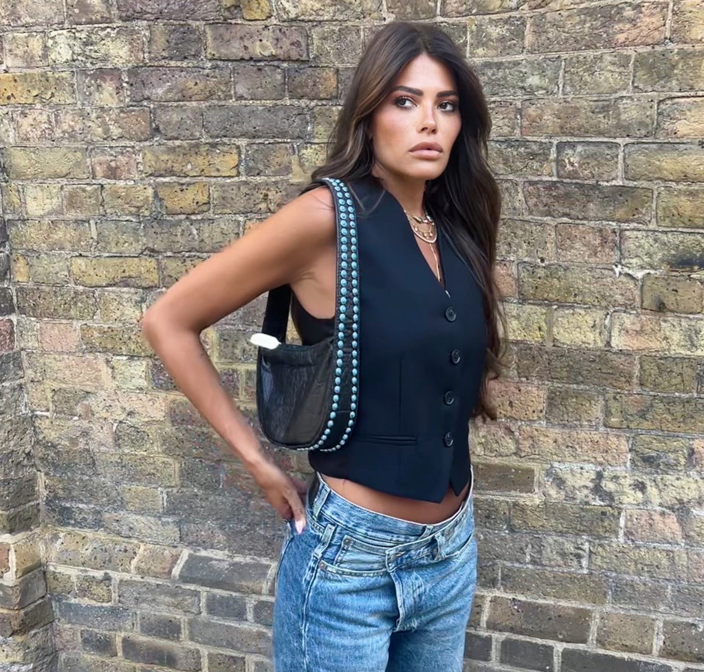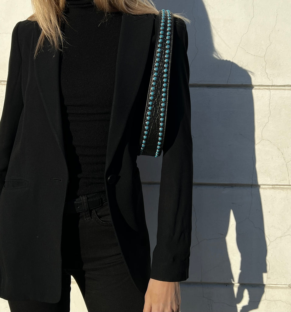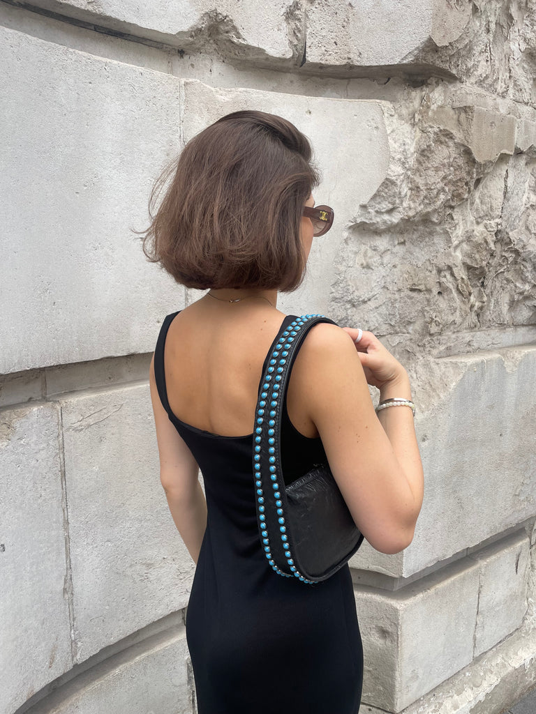 Each stone is brass framed and individually studded with a postback ensuring the studs never falling off. The perfect handbag that takes you from day to night shoulder bag with a structured frame and slouchy body. A timeless piece due to its sleek design.