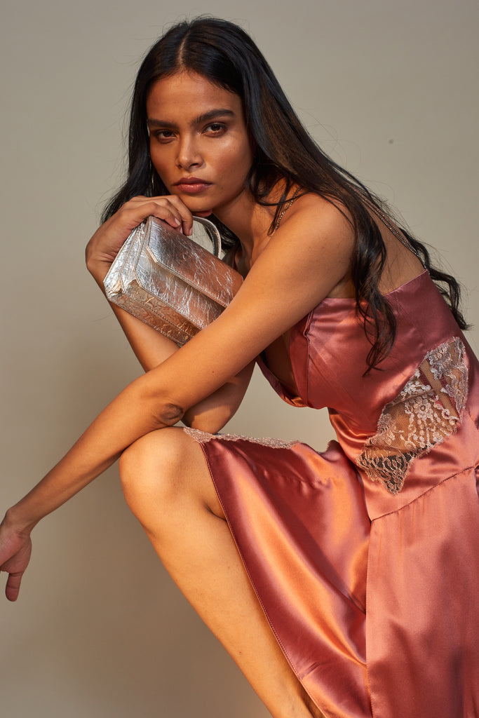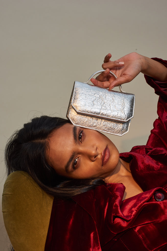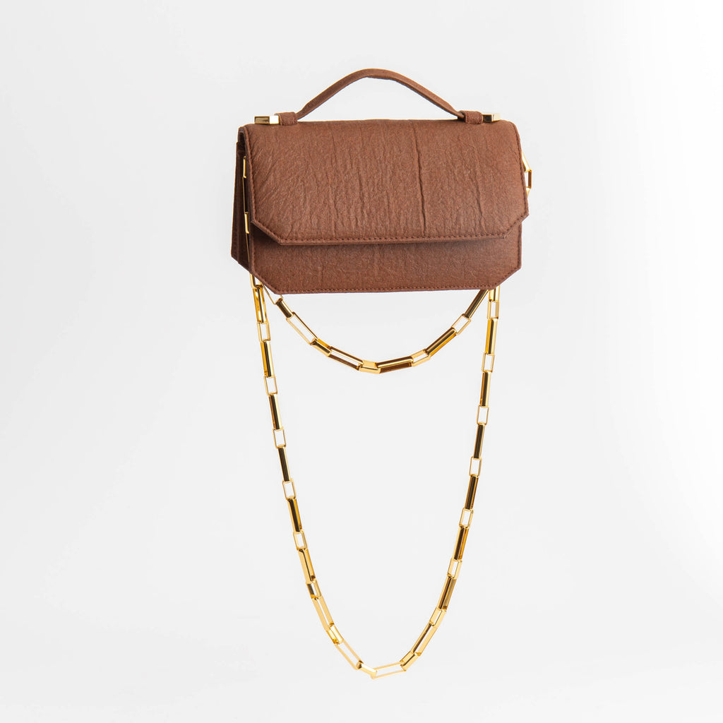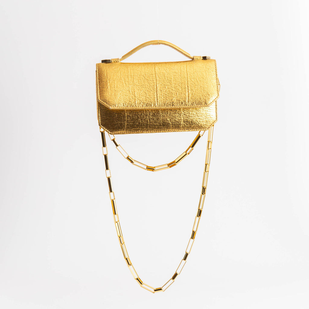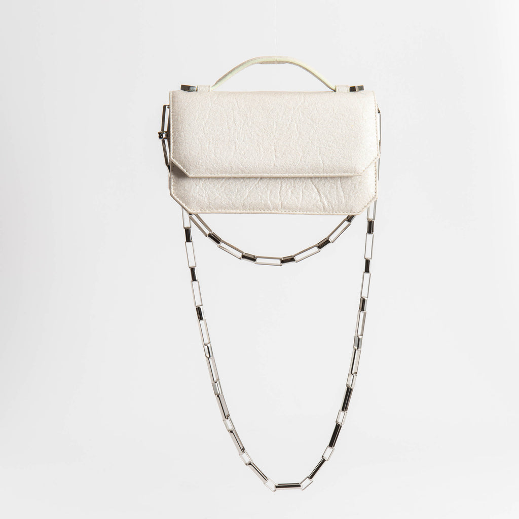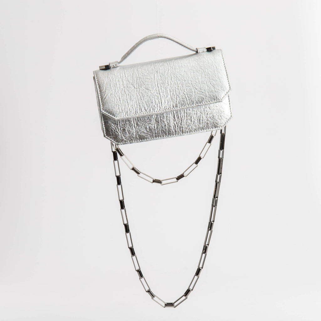 MārīcīSmall and chic, The South Kensington is a timeless classic with a rockstar twist. Carry yours by the leather top handle or by its two 18ct gold plated brass jewellery chains of differing length for versatile looks.